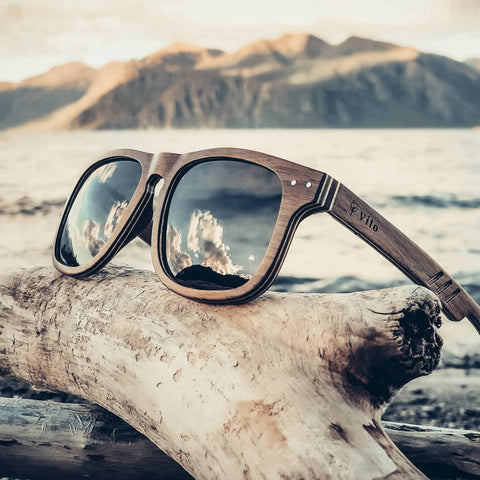 Canyon laminated wooden sunglasses. Laminated maple and walnut wood frames create strength and durability. This latest eyepiece encompasses our favourite elements of Vilo design. Suitable for both women and men.